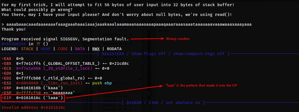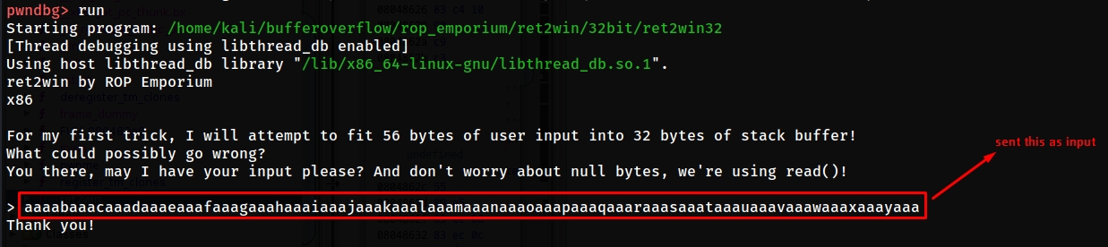 let's run the binary and send this pattern as input