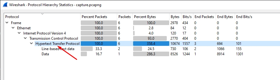 we have a pcap file to analyze. first thing let's open it using wireshark and the first thing let's view the protocol hirarchy on the statistics tab