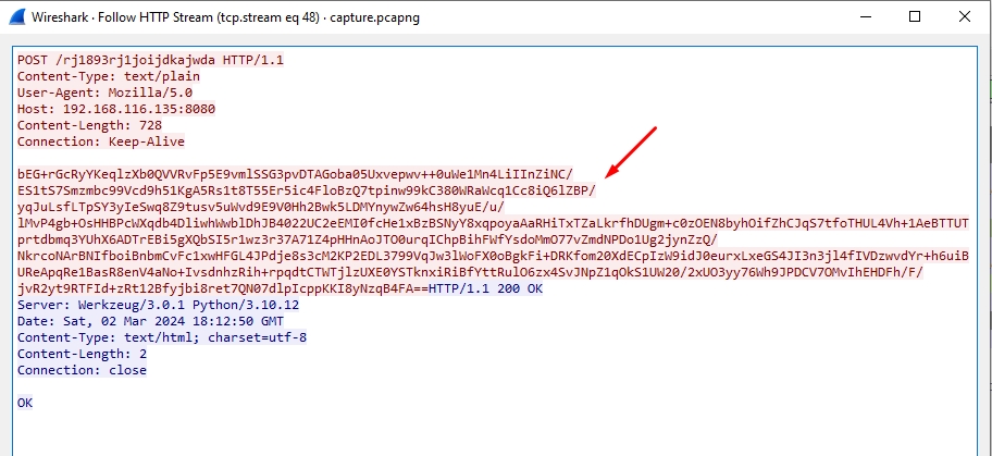 so we have to get the encryptedData sent and try to decrypt it, previously on wireshark http traffic we have showcased 2 interesting endpoints the first one was used to download the malicious powershell script and the second one which is /rj1893rj1joijdkajwda