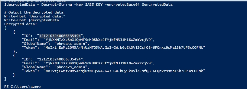 $decryptedData = Decrypt-String -key $AES_KEY -encryptedBase64 $encryptedData