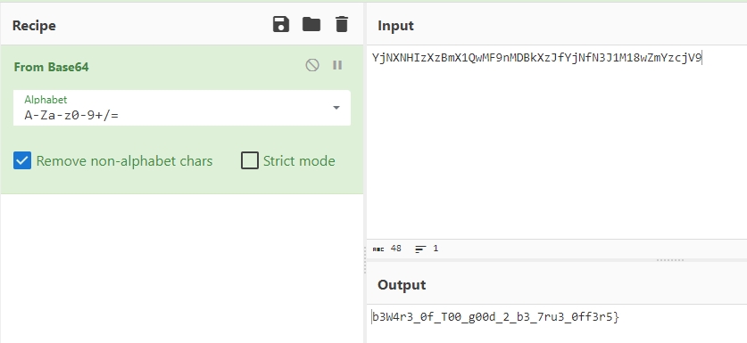 the Email value is base64 encoded so decoding yeilds the first part of the flag